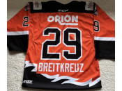 Über Günter haben wir dieses Trikot bekommen, dass vermutlich 1994/95 eingesetzt werden sollte. Ein potentieller Sponsor ließ 2x 20 Stück produzieren - zum Einsatz kamen diese Trikots aber dann nie. Das Trikot gibt es in den Grundfarben Grau und Schwarz - jeweils mit Orange und Blau.